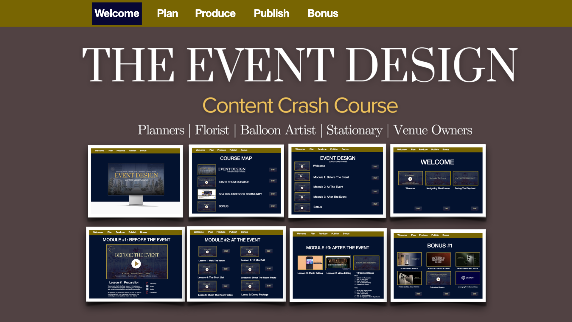 For: Event Planner, Designer, Florist, Balloon Artist, Stationary Designer, Floor Decal Specialist, or Cake Designer and desire to attract new clients using content marketing.